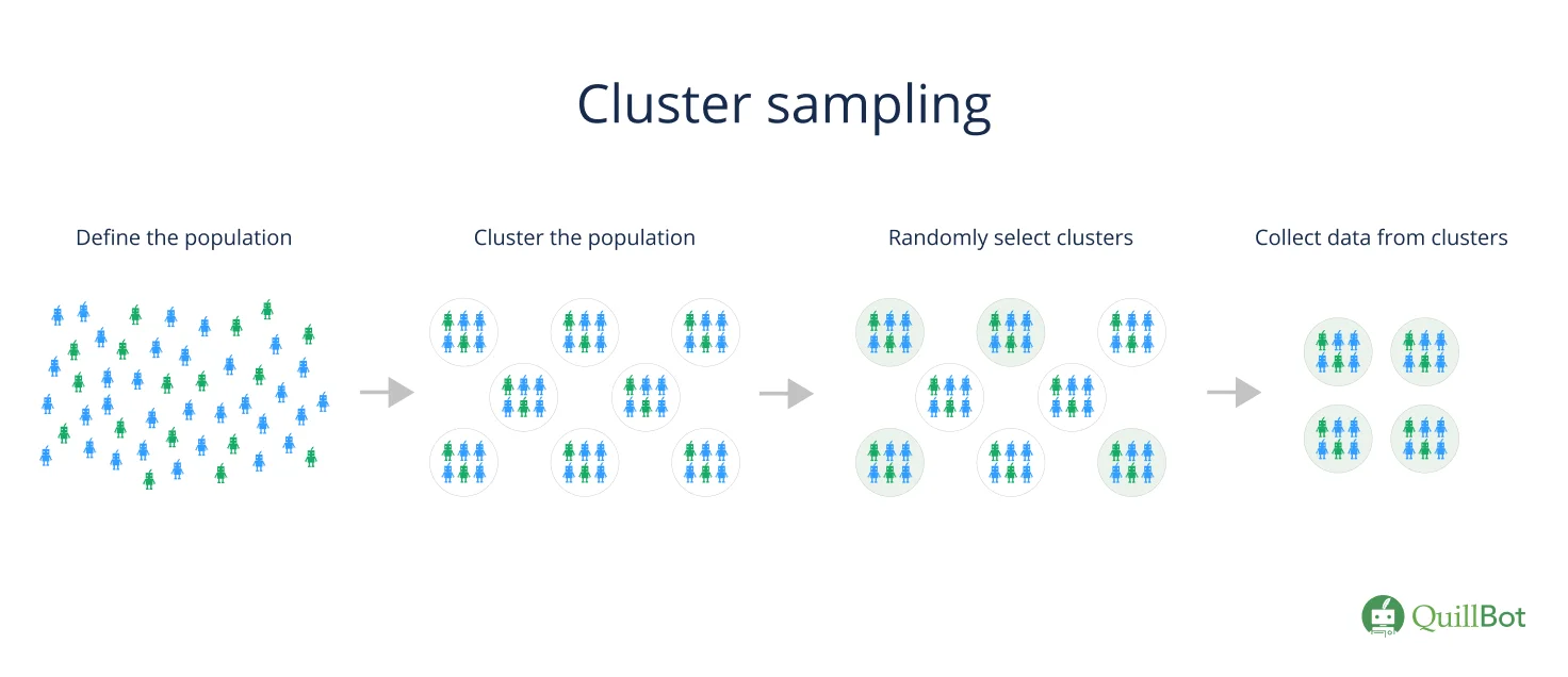 Another sample is then drawn for each stratum using a different random sampling method (e.g., cluster sampling). This way, researchers can estimate statistics (e.g., averages) for each subpopulation.