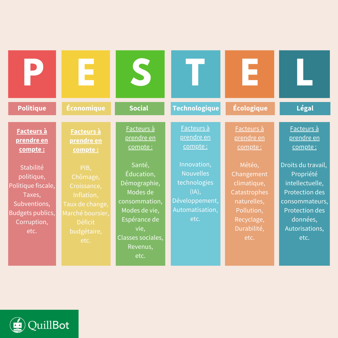 Le peton, M. (2 décembre 2025). Analyse Pestel : comprendre son environnement. Quillbot. Date : 9 avril 2026, issu de l’article suivant : https://test.abubakkarahmad.com/fr/blog/marketing-digital/analyse-pestel/