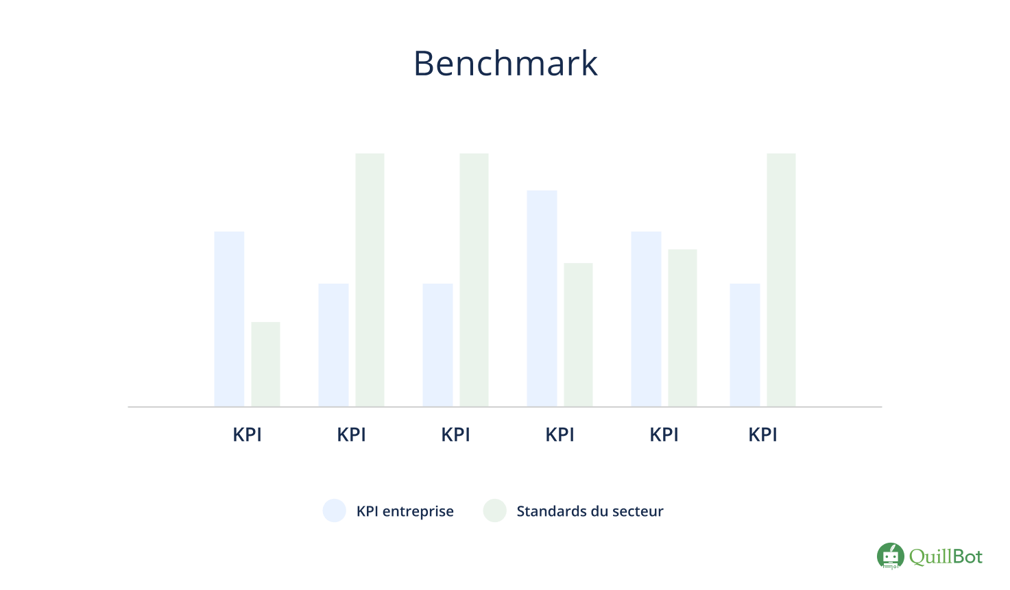 - Le benchmark, quant à lui, se concentre davantage sur la comparaison des performances et des pratiques d’une entreprise avec celles de ses concurrents ou d’autres références du secteur. Il s’appuie sur des indicateurs clés de performance (KPI) spécifiques pour évaluer et mesurer les écarts entre les différentes entités.